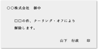 クーリング・オフでは、一定の期間内に「契約解除の通知を発信した事実を証明」する必要があるため、内容証明郵便を利用するのが一般的です。