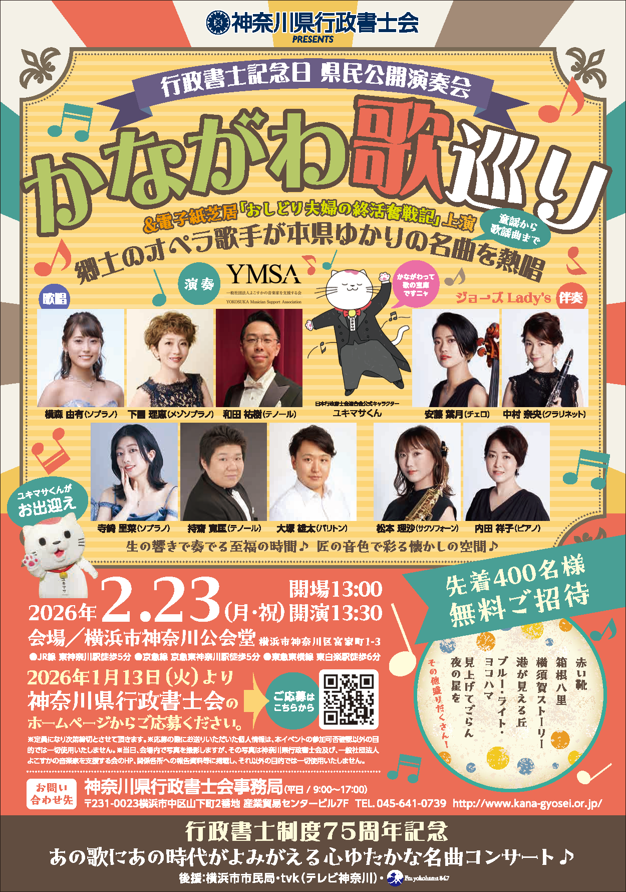 行政書士制度75周年を記念し、県民の皆さまとともに歩む行政書士会の新たな節目を祝し、公開演奏会を開催いたします。